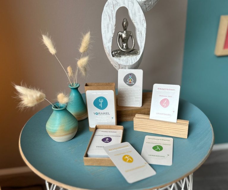 Mein YORAKEL ist ein liebevoll gestaltetes Kartenset, das Yoga, Achtsamkeit und spirituelles Orakeln miteinander verbindet.